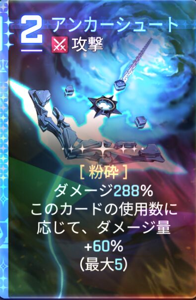 アンカーシュートを使用するたびに蓄積されるバフで、次回使用時のダメージを+60%増加させます。